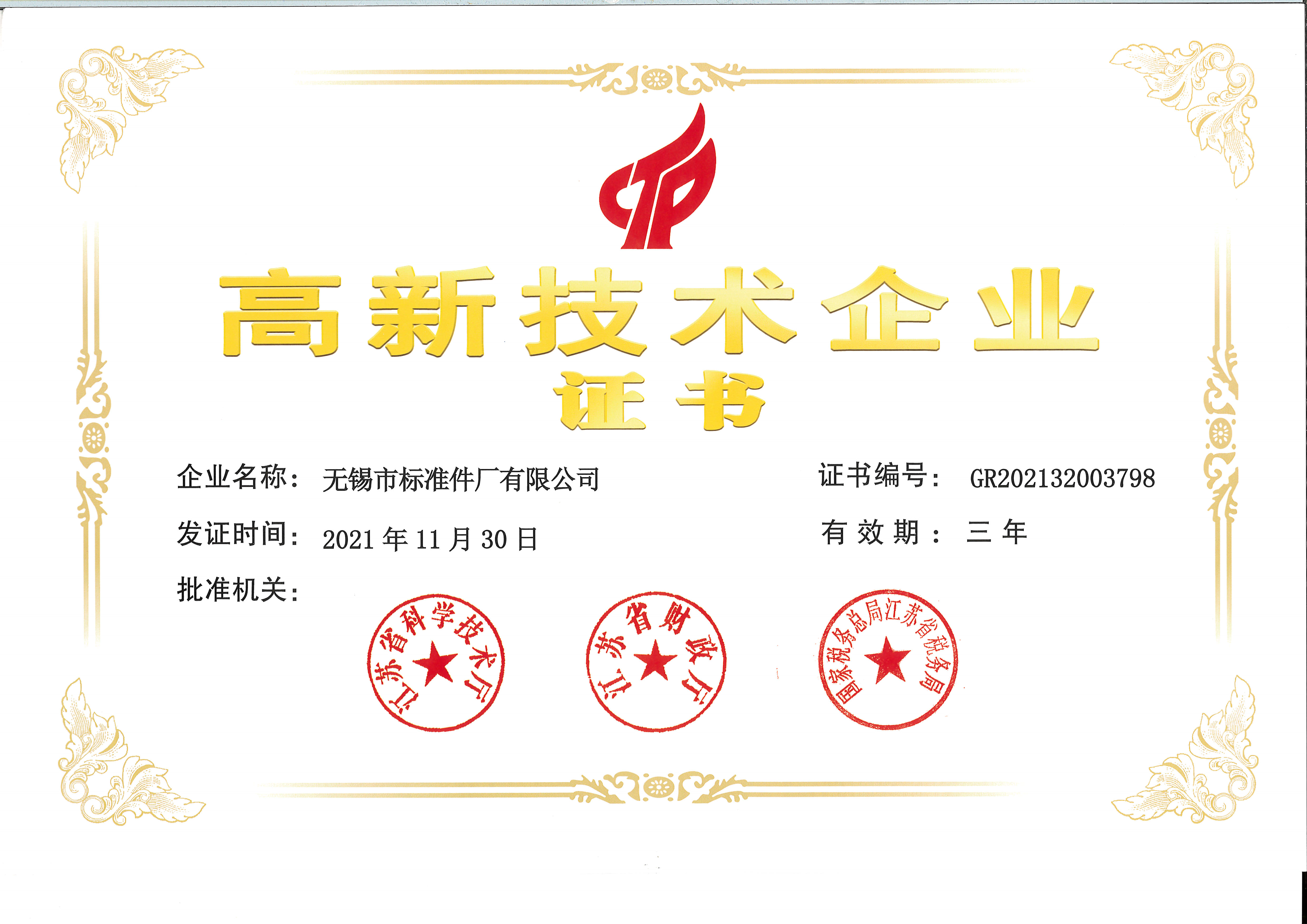 高新技术企业证书